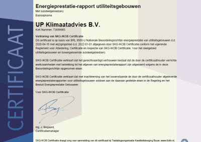 UP Klimaatadvies is gecertificeerd voor het opstellen van het energielabel voor zowel woning als utiliteitsbouw, volgens de BRL9500 certificering, en kan hiermee al uw vastgoed met één aanspreekpunt voorzien van een energielabel. Wij maken en leveren het EPA-label, hierin zijn twee soorten labels: het EPA-U label en het EPA-W label.