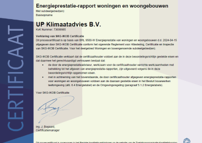 De BRL 9500-W en -U certificaten zijn de energie-indexen voor woningen (W) en utiliteitsgebouwen (U), hiermee kunnen en mogen we de energieprestaties van woningen en bedrijfspanden meten.